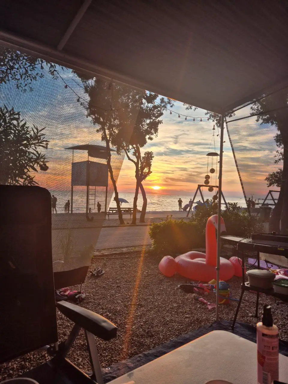 Unser Stellplatz in der ersten Reihe direkt am Meer war einfach ein Traum. Vom Wohnwagen aus waren wir in wenigen Schritten am Strand – ohne lange Wege oder Schlepperei.