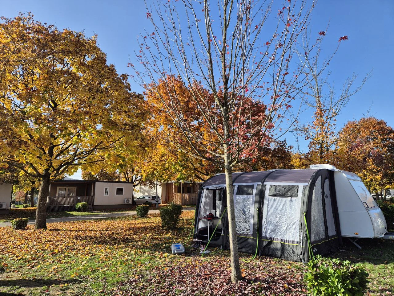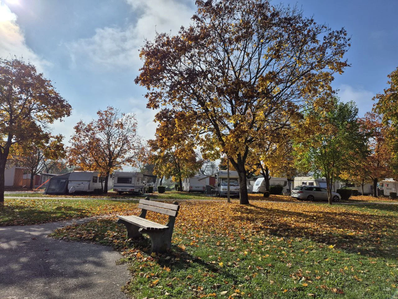 Ein kleiner Nachteil: Die Stellplätze sind größtenteils auf Rasen. Im Herbst und Winter ist das eher suboptimal, da feuchtes Wetter und nasses Laub schnell für schmutzige Schuhe und Vorzelte sorgen.