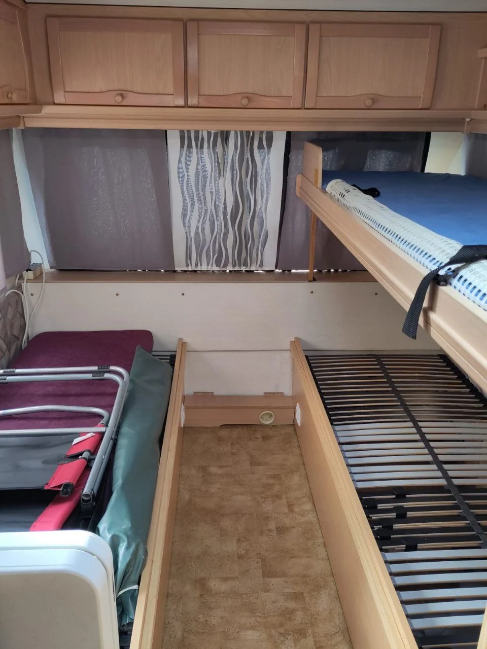 - Grundriss: 2 Einzelbetten, 1 Etagenbett, Rundsitzgruppe, umbaubar zum Elternbett